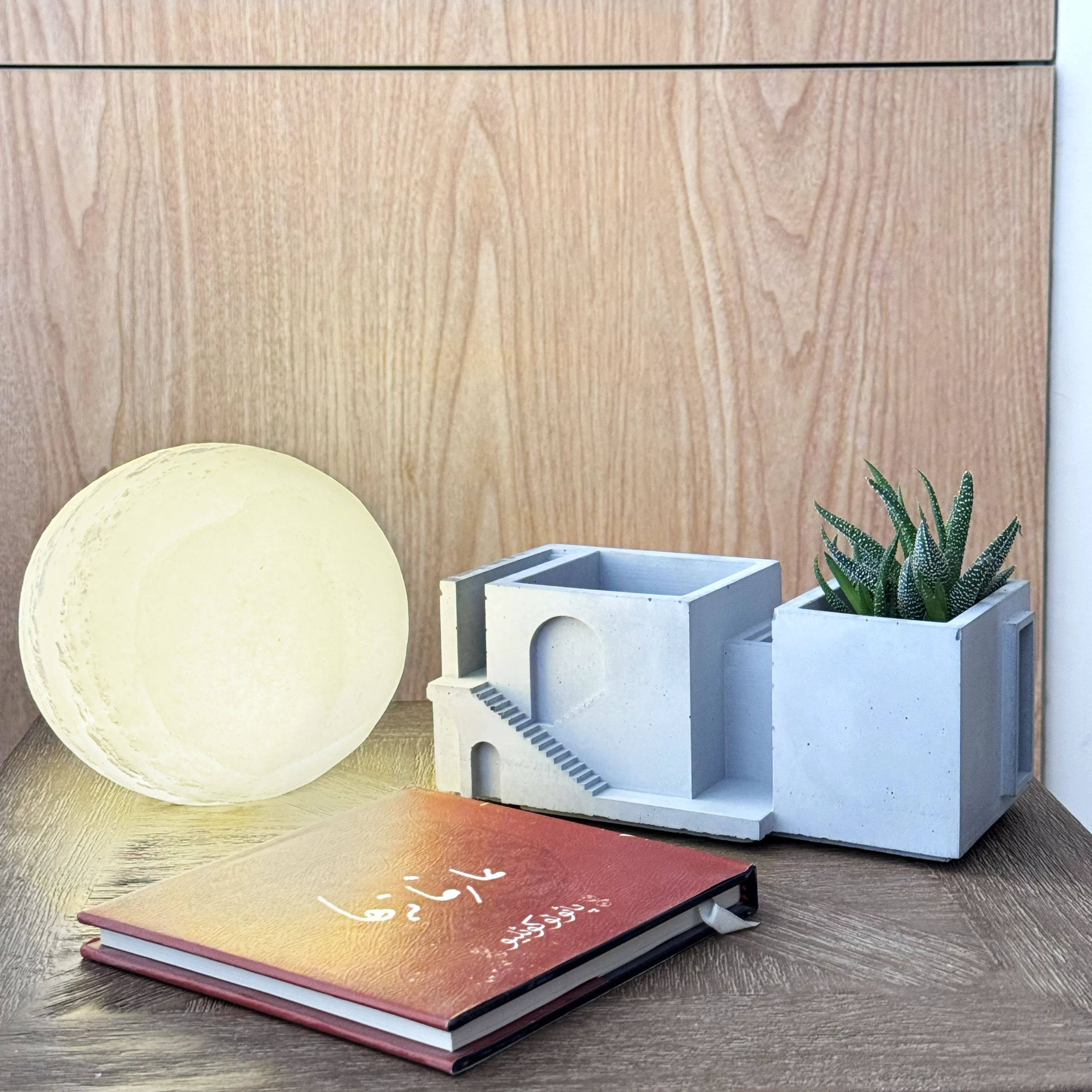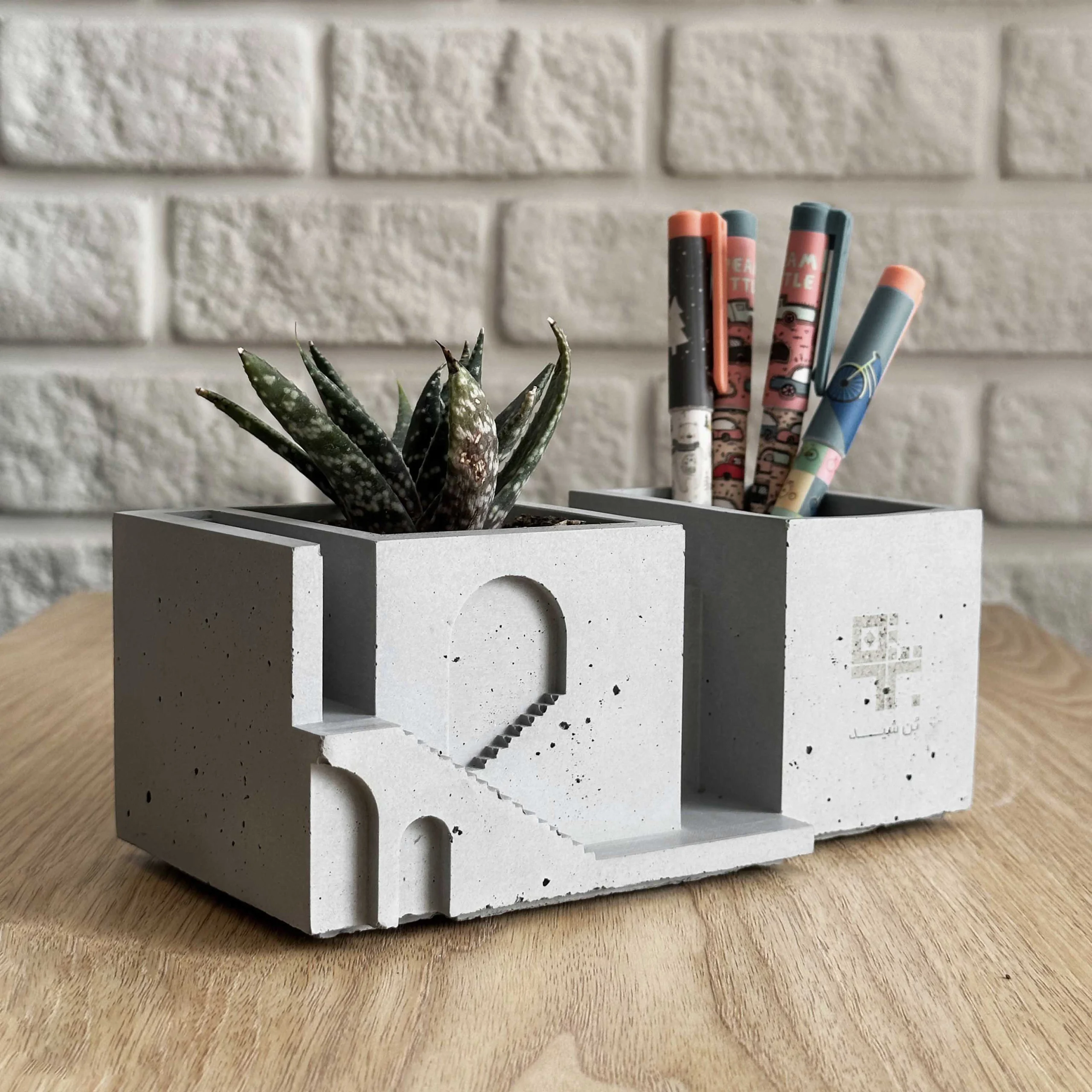نیم ست رومیزی بتنی مدل بن: جامدادی و گلدان ضد آب